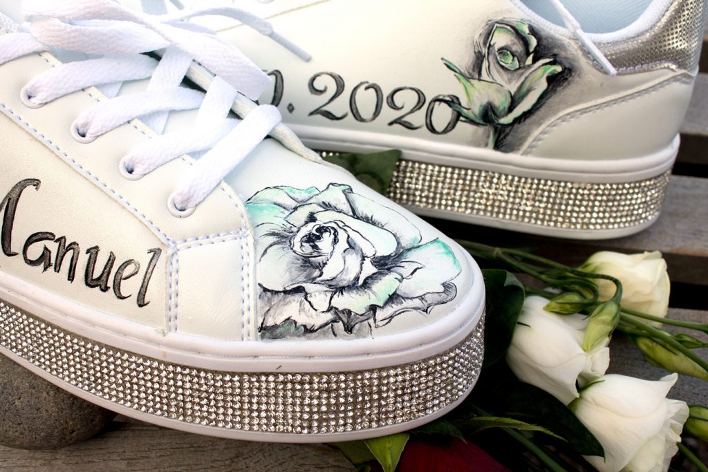 Eher schlicht in der Bemalung waren diesen beiden die Namen, das Datum und weiße Rosen wichtig. Manchmal braucht es auch nicht viel mehr.